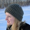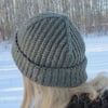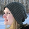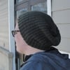 - Long beanie (can be worn slouchy, slouchy with a tacked tuck, or snug with a rolled brim)